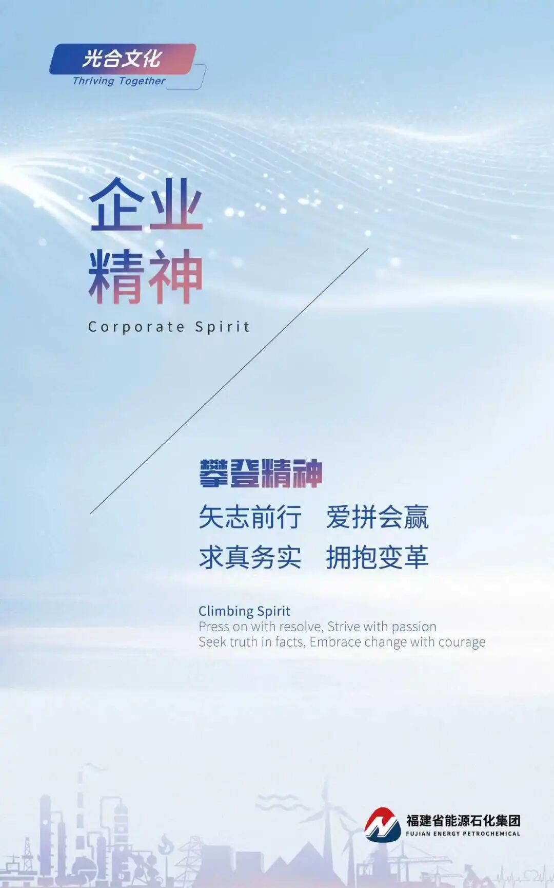 承接光合文化的能量底色,是價值創造的動能引擎。強調主動作為、迎難而上的責任意識,以及永不懈怠、拼搏奮斗的進取精神,體現的是員工在組織滋養與賦能下,將健康積極的精神能量源源不斷轉化為業務價值成果的動態過程。